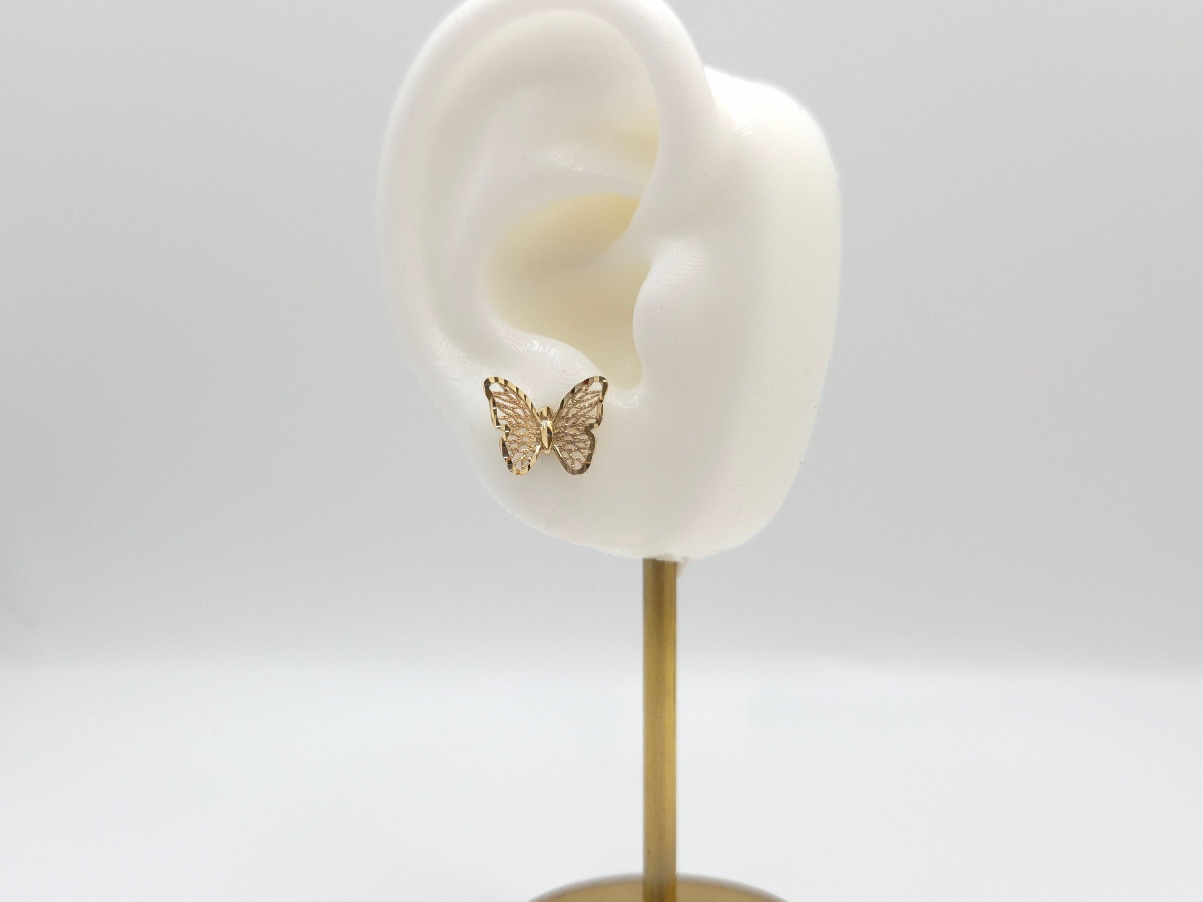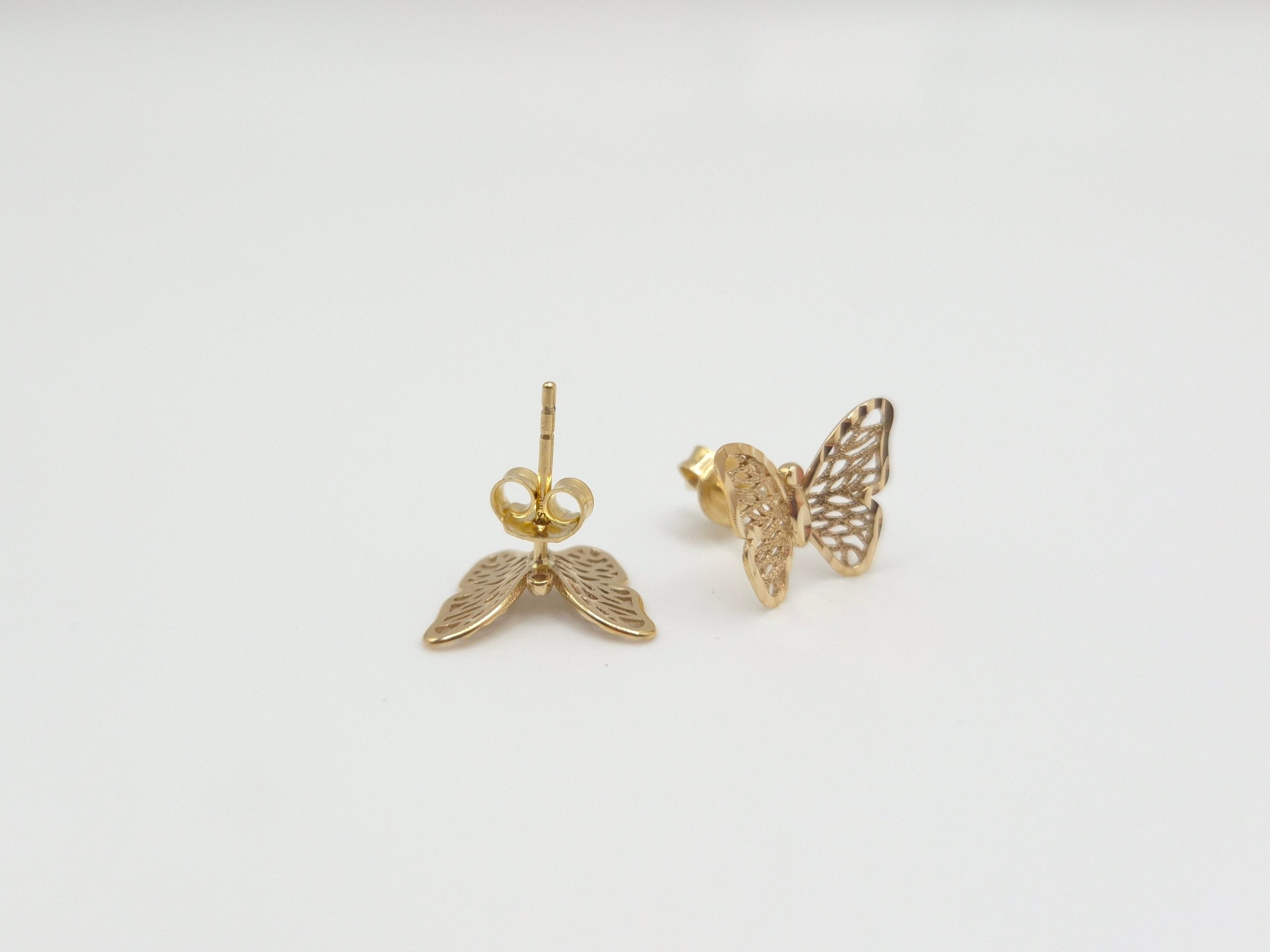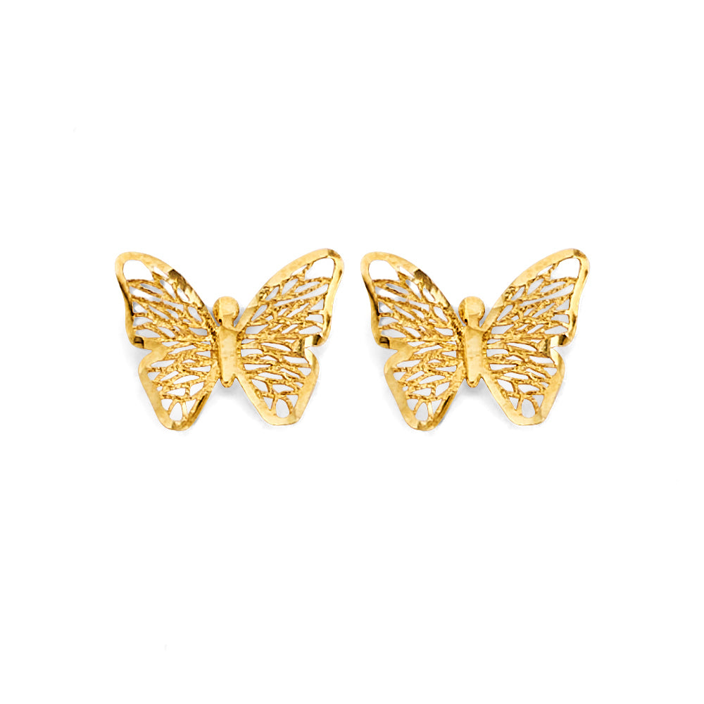 Delicate and playful, these 14K yellow gold butterfly stud earrings are a sweet symbol of beauty and transformation. Designed with an intricate openwork finish, they add a charming sparkle to any look while remaining lightweight and comfortable for daily wear. Secured with classic push backs, they’re a perfect choice for both little girls and women who love whimsical, nature-inspired jewelry.