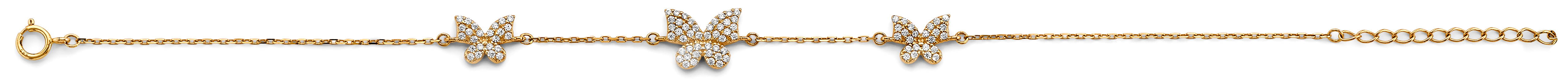 Add a little magic to your wrist stack with this dainty butterfly bracelet. Featuring multiple butterfly charms encrusted with brilliant cubic zirconia stones, this piece is crafted in real 14K gold and finished with a 1" extender for the perfect fit. Each butterfly sparkles with movement and symbolizes transformation, beauty, and lightness.