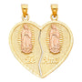 - Presenting a 14k yellow gold split heart pendant with "te amo" elegantly divided on the pendants, adorned with images of La Virgen de Guadalupe on each side in 14k rose gold for a symbolically rich and enchanting design.