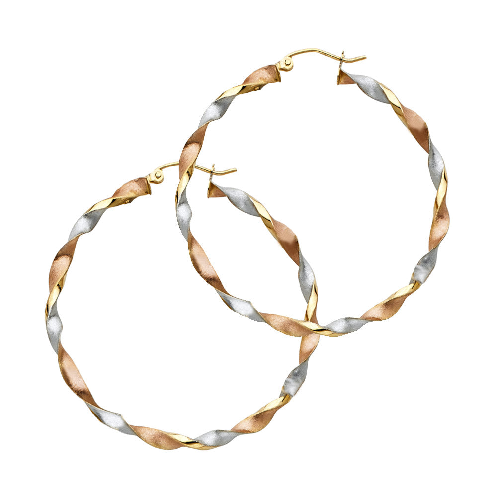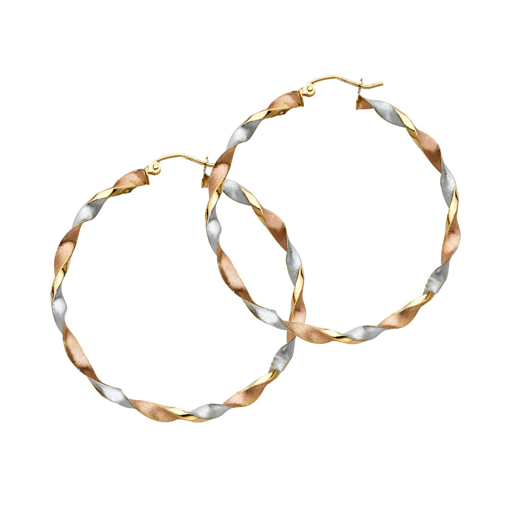 14k solid gold tri color twisted hoop earrings