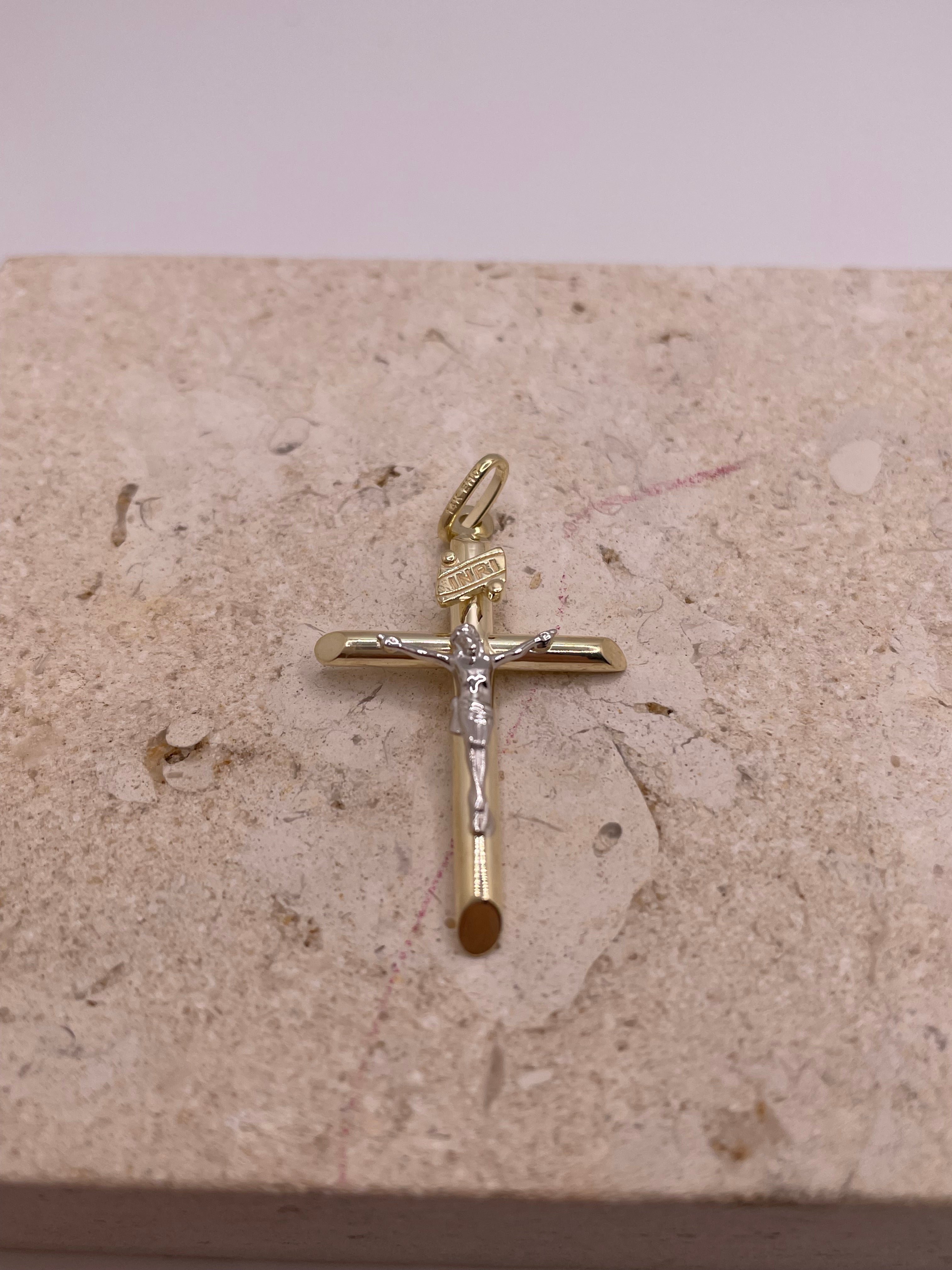 - Product Type: Two Tone Crucifix Pendant in 14k Yellow Gold & 14K White Gold