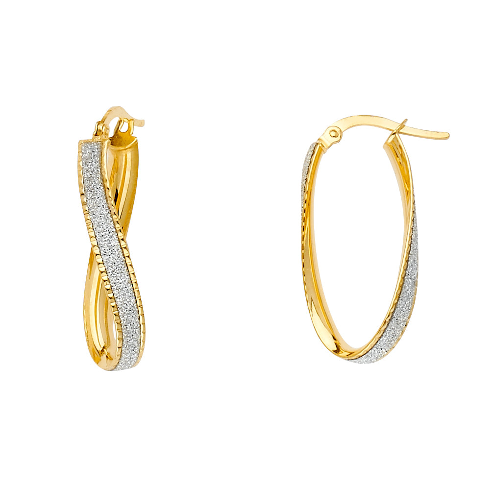 - Design: Presenting Two-Tone Glitter U Shape Earrings in 14k Yellow Gold & White Gold for a chic and versatile accessory