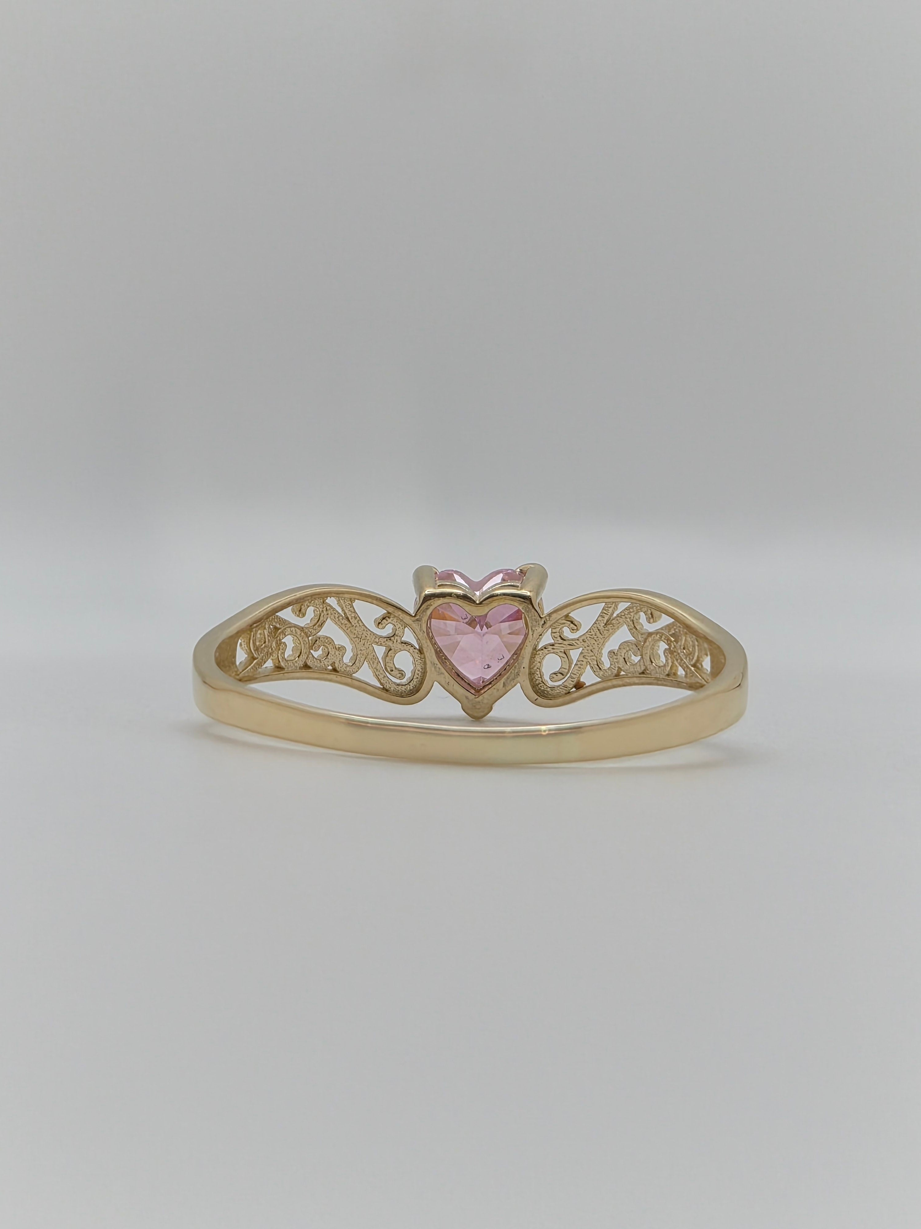 Celebrate love and elegance with this stunning 14K gold cubic zirconia heart ring. Crafted in solid gold, the ring features a beautiful heart design adorned with sparkling cubic zirconia stones, available in your choice of pink, green, or red. This dainty yet eye-catching piece is perfect for adding a pop of color to any outfit.