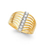 Crafted in 14K yellow, white, and rose gold, this wavy open band ring brings effortless elegance with a twist. Three round-cut CZ stones line the center, adding the perfect amount of sparkle to its modern, layered design. Minimal glam, maximum impact.