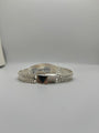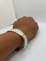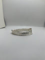 This bold and classic 925 sterling silver ID bracelet features a wide woven link design and a brushed rectangular plate with diamond-cut edges—perfect for custom engraving. The edges are finished with a high-polish shine and a detailed cut pattern that adds a touch of dimension and brilliance.